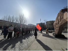 按照活动议程,鼓楼参观之后党员们前往景岳小学参观三烈士纪念馆,了解崔景岳、马文良、孟长有革命先烈的英勇事迹,通过实物、图片和多媒体展示,深刻感受先烈们坚定的理想信念和无畏的牺牲精神。在三烈士纪念馆前的广场,全体党员庄严肃立,举行缅怀仪式。接着,向烈士敬献花篮,全体党员三鞠躬、默哀,随后全体党员朗诵了诗歌《缅怀先烈》。