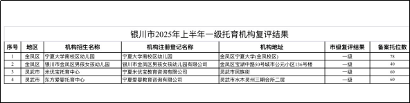 2025年4月3日,宁夏大学南校区幼儿园顺利通过银川市卫生健康委员会一级托育机构复验,正式授予“银川市一级托育机构”称号。这一荣誉标志着幼儿园在硬件设施、保教质量、卫生保健及规范化管理等方面均达到银川市托育服务行业领先水平。