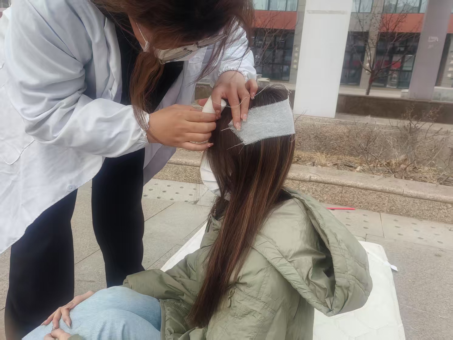 全体师生安全疏散到指定地点后,辅导员立即查看师生有无受伤情况并清点人数,汇总后向现场指挥报告。现场还对包扎和心肺复苏两个自救与互救科目进行了学习。保卫处张俊伟老师对应急演练作现场点评并提出改进意见。