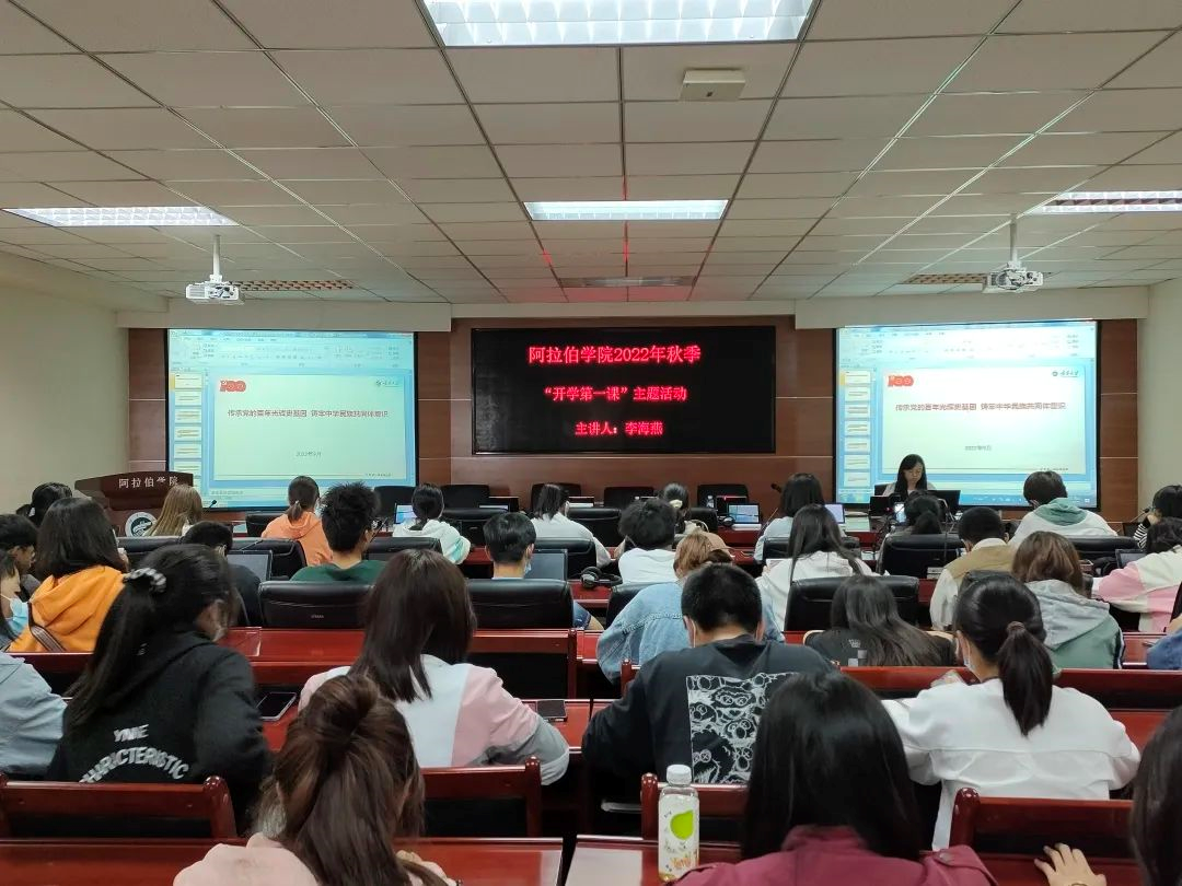 9月21日下午,阿拉伯学院(中国阿拉伯国家研究院)在知行楼八楼报告厅召开阿拉伯学院2022年秋季“开学第一课”主题活动。本次活动由阿拉伯学院党总支书记李海燕老师围绕“传承党的百年光辉史基因,铸牢中华民族共同体意识”作了专题辅导报告。学院2022级全体学生参加。