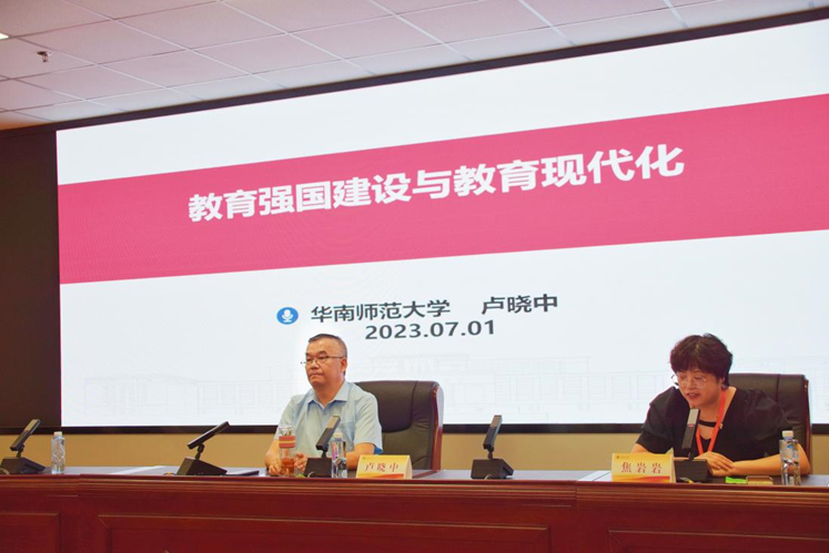 【郭婉鹏 文/图】2023年7月1日下午,学院邀请了华南师范大学粤港澳大湾区教育发展高等研究院院长卢晓中教授为我院师生作了题为《教育强国建设与教育现代化的路径选择》的学术报告会。会议由宁夏大学教师教育学院副院长焦岩岩主持,教师教育学院教师、研究生100余人参加。