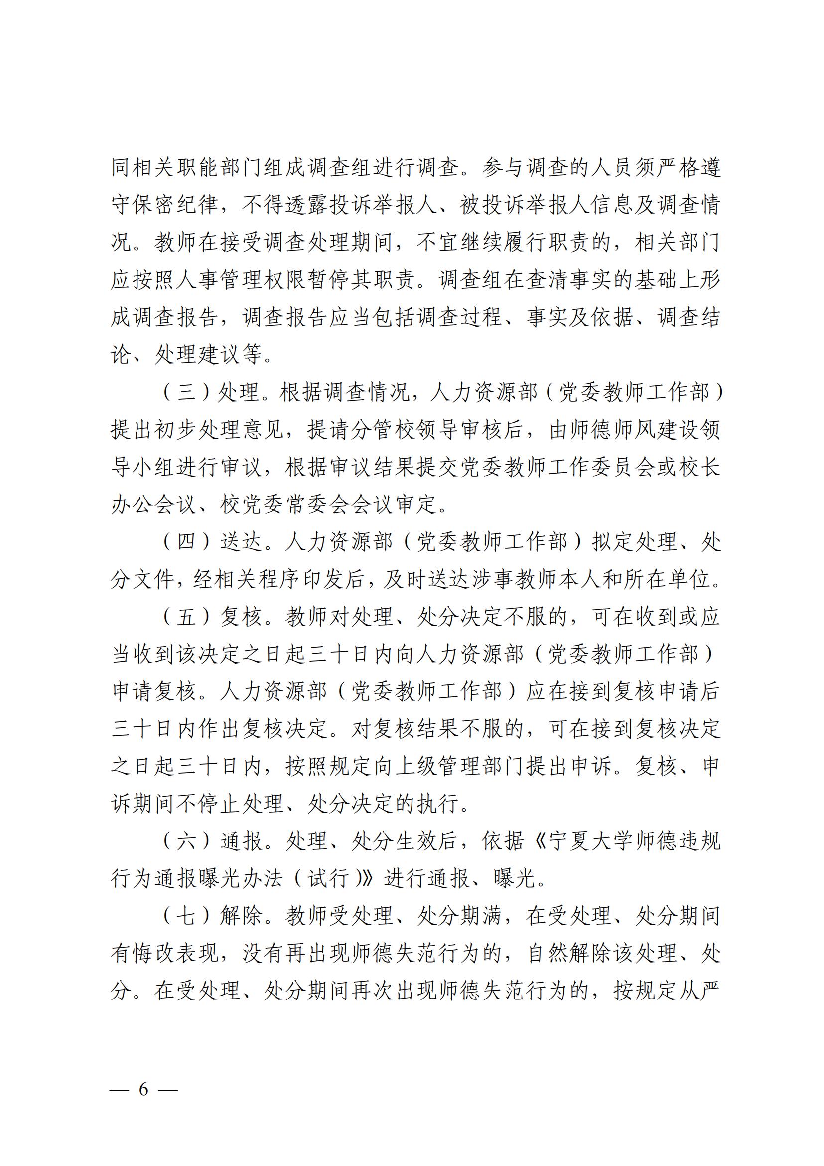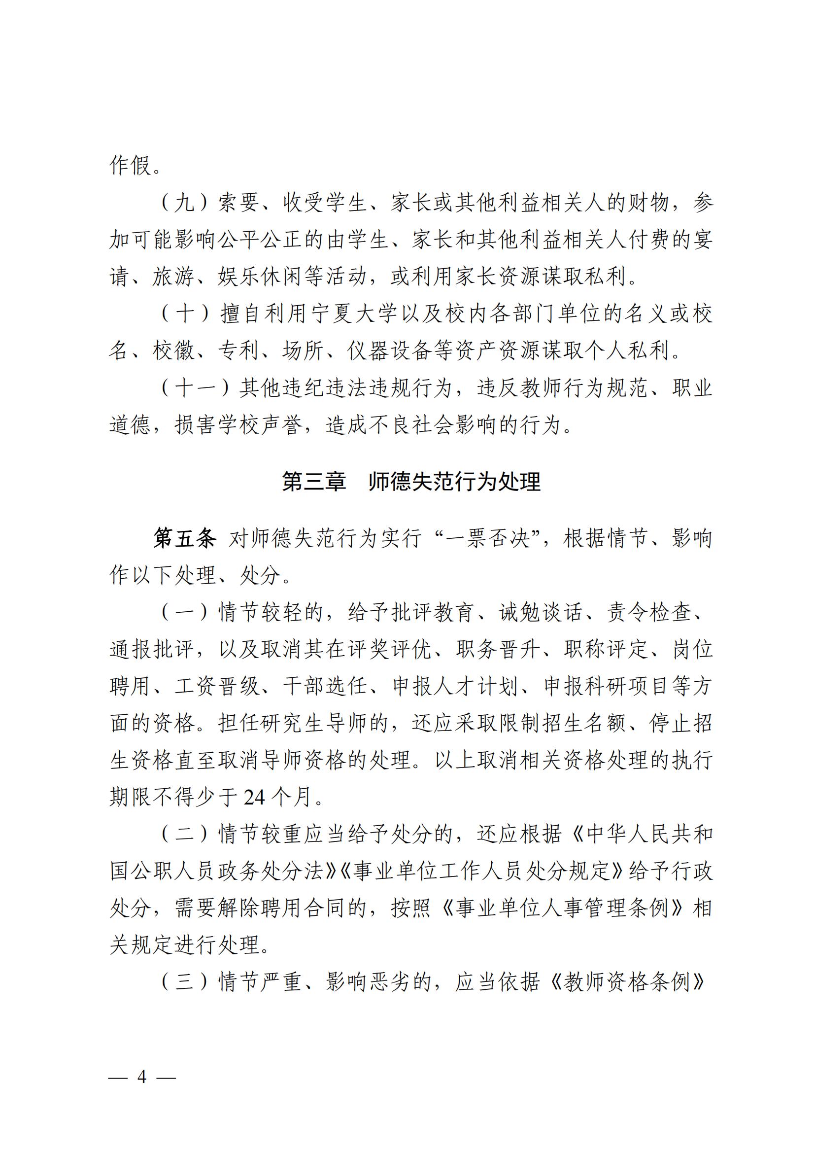宁夏大学教师师德失范行为处理办法