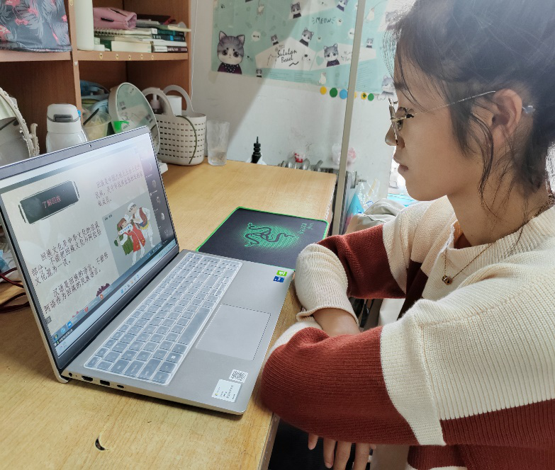 2019级陈嘉宇同学与舍友一起认真听了讲座,她说:“林老师介绍了‘三个离不开’、‘五个认同’的具体内容,很受启发。我们五十六个民族五十六朵花,五十六个民族兄弟姐妹是一家。我们兄弟姐妹要像石榴籽一样紧紧抱在一起,共同建设美好和谐富强的大中国” 。