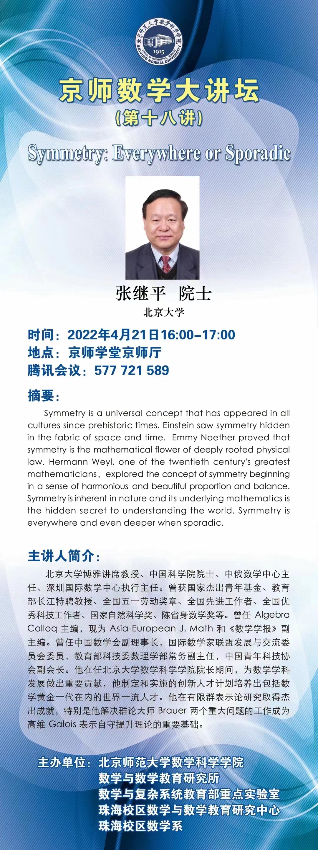 上一条:数学统计学院学术交流系列报告十八 下一条:数学统计学院学术交流系列报告十六