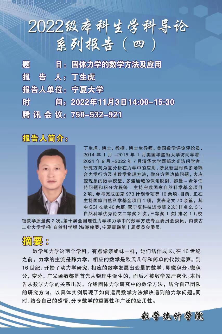 上一条:数学统计学院学术交流系列报告之二十五 下一条:2022级本科生学科导论系列报告(三)