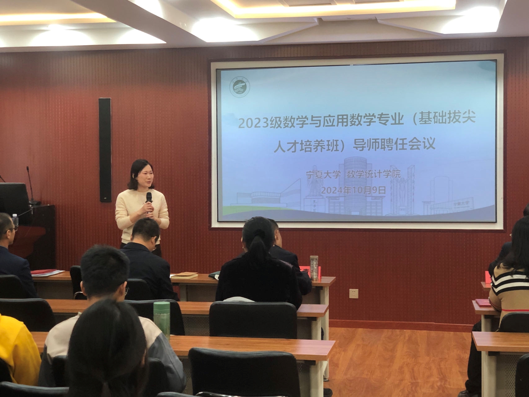为了落实基础拔尖人才培养计划,提升拔尖人才培养质量,10月9日下午,数学统计学院在宁远楼213室举行了2023级“基础拔尖人才培养班”导师聘任仪式。学院领导班子成员、基础拔尖班新聘班主任和导师、2022级和2023级基础拔尖人才培养班全体同学参加会议。会议由专业负责人亢婷主持。
