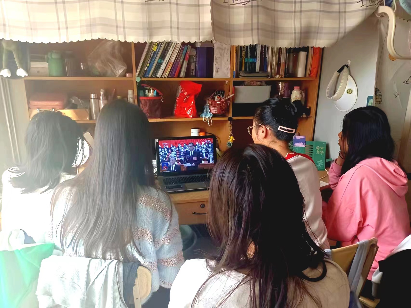 根据学校当前疫情防控形势,学院师生党员分别在办公室、宿舍、家里等地方,通过电视、网络、手机等途径就地收听收看开幕大会盛况。学院第十三届学生组织全体成员通过腾讯会议统一收看盛况。大家畅谈收听收看感想,热议习近平总书记所作的工作报告。