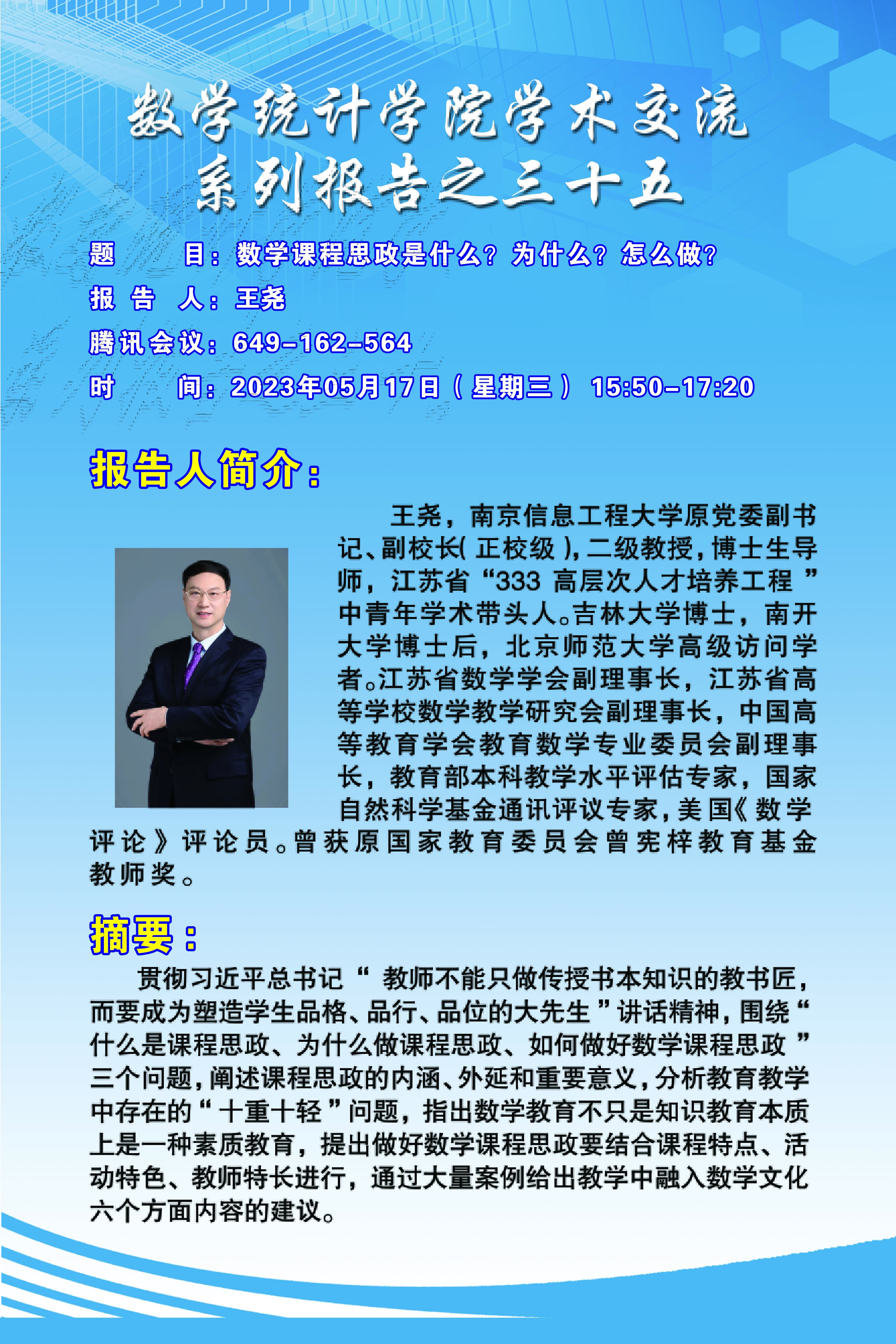 上一条:数学统计学院学术交流系列报告之三十六 下一条:数学统计学院学术交流系列报告三十四