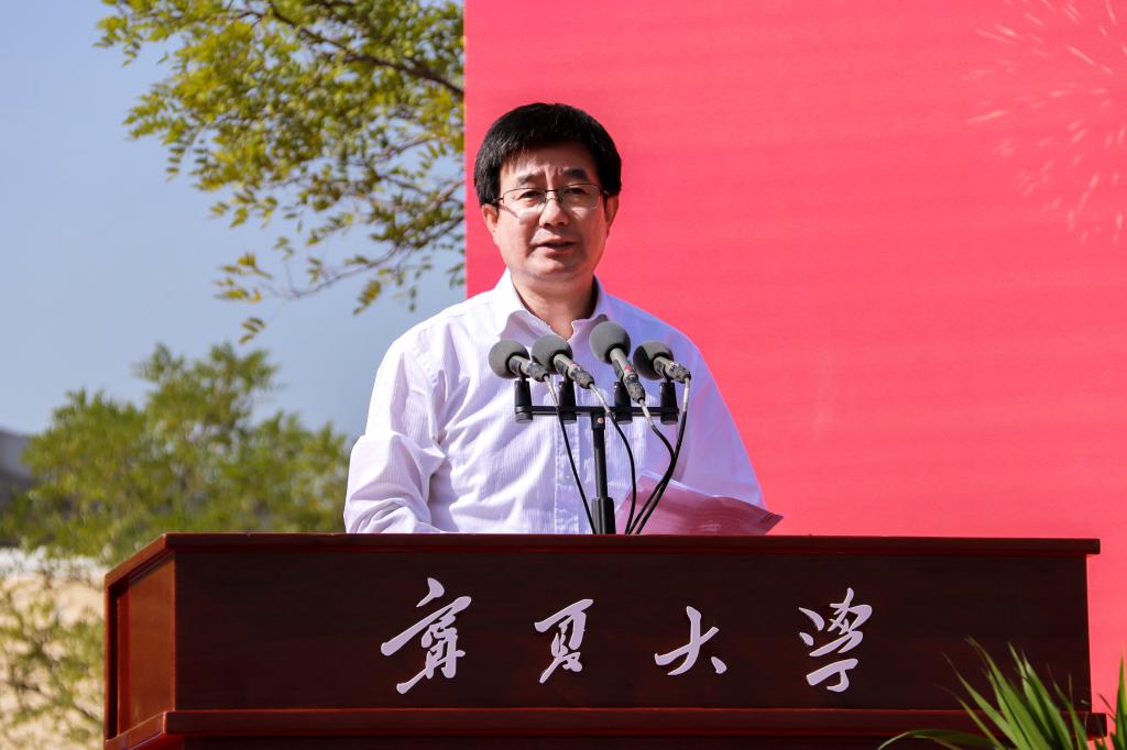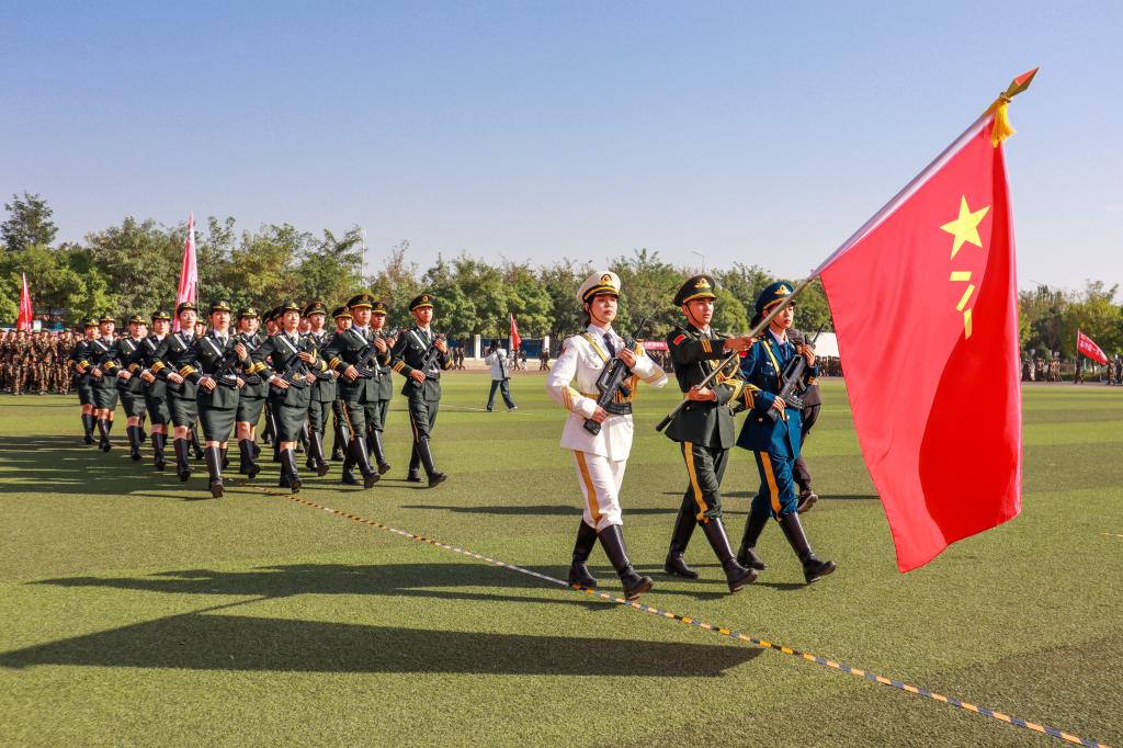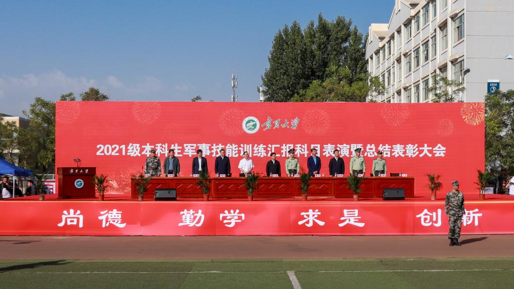 【宁夏大学新闻中心讯 姚硕/文 张景,学生记者:李雪、李成/图】海无惊涛不壮阔,人无磨难少坚强。9月30日,值此国庆前夕,我校隆重举行2021级本科学生军训汇报科目表演暨总结表彰大会。校领导李星、谢应忠、郎伟、李建设、刘炎胜、周震,武警宁夏总队副参谋长王德富出席大会。党委学生工作部部长、学生处处长、军训团政委罗进德主持大会。