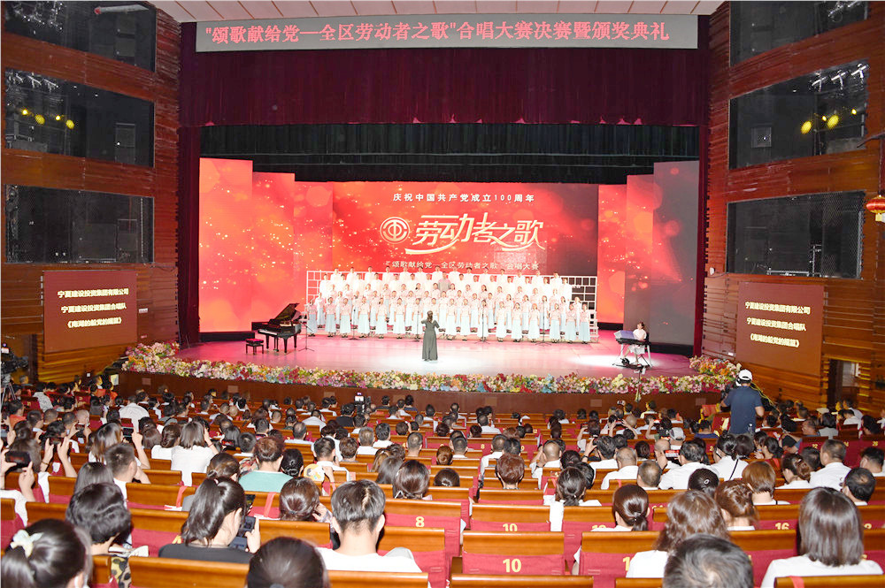 【宁夏大学新闻中心讯 龚旭峰 张新民/文 龚旭峰/图】7月16日,庆祝中国共产党成立100周年“颂歌献给党——全区劳动者之歌”合唱大赛决赛暨颁奖典礼在宁夏人民剧院精彩上演。我校老教师艺术团自开赛以来连闯初赛、复赛晋级决赛,与17支实力强劲的合唱队激烈角逐,通过一曲《信天游再唱东方红》的完美演绎斩获一等奖。自治区相关单位领导,我校原党委副书记、宁夏老年大学宁夏大学分校校长王燕昌出席活动,与现场上千名观众共同欣赏了这场宁夏最高水平的合唱大赛。